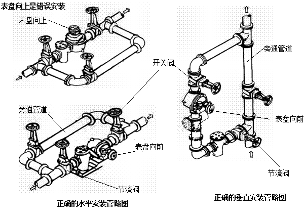 1.3不论管路是垂直还是水平安装,但流量计中的转子轴安装成水平位置(即表度盘应与地面垂直),见上图。